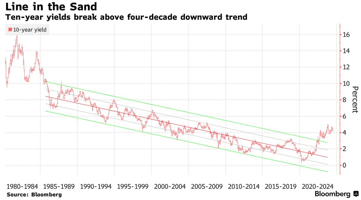 目前,投资者的情绪正变得越来越乐观。截至上周五,彭博衡量美国国债收益率的指标在2024年仅下降了0.3%,而在低点时,该指标全年跌幅高达3.4%。基准国债收益率较4月份创下的年内迄今高点下跌了约0.5个百分点。