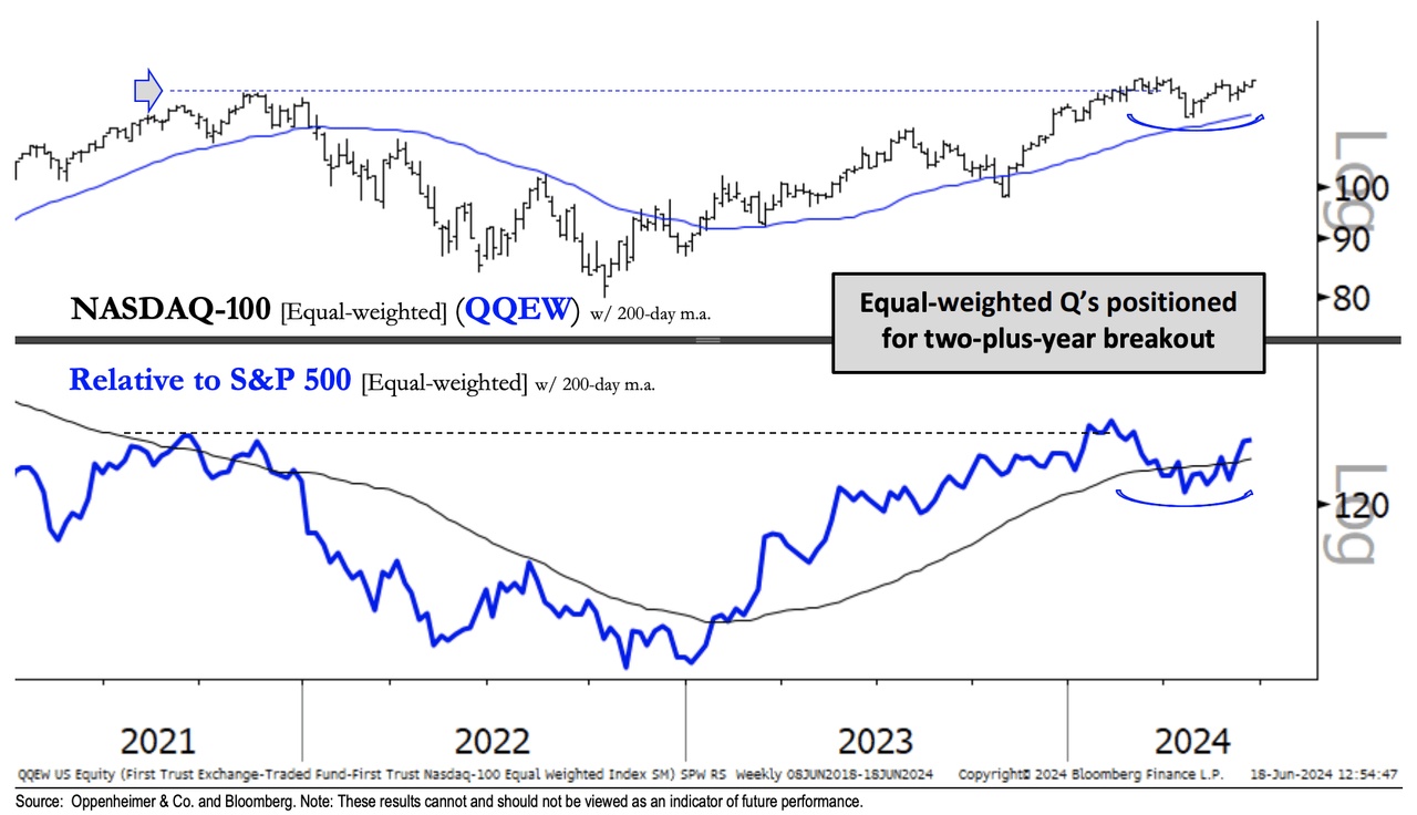 他表示:“作为中型成长股的代表,我们认为等权重指数First Trust NASDAQ-100 Equal Weighted Index Fund(QQEW.US)是一个板块轮动首选,因为我们认为它在长期增长的领导地位和较低市值的中期轮动潜力之间达到了有吸引力的平衡。”
