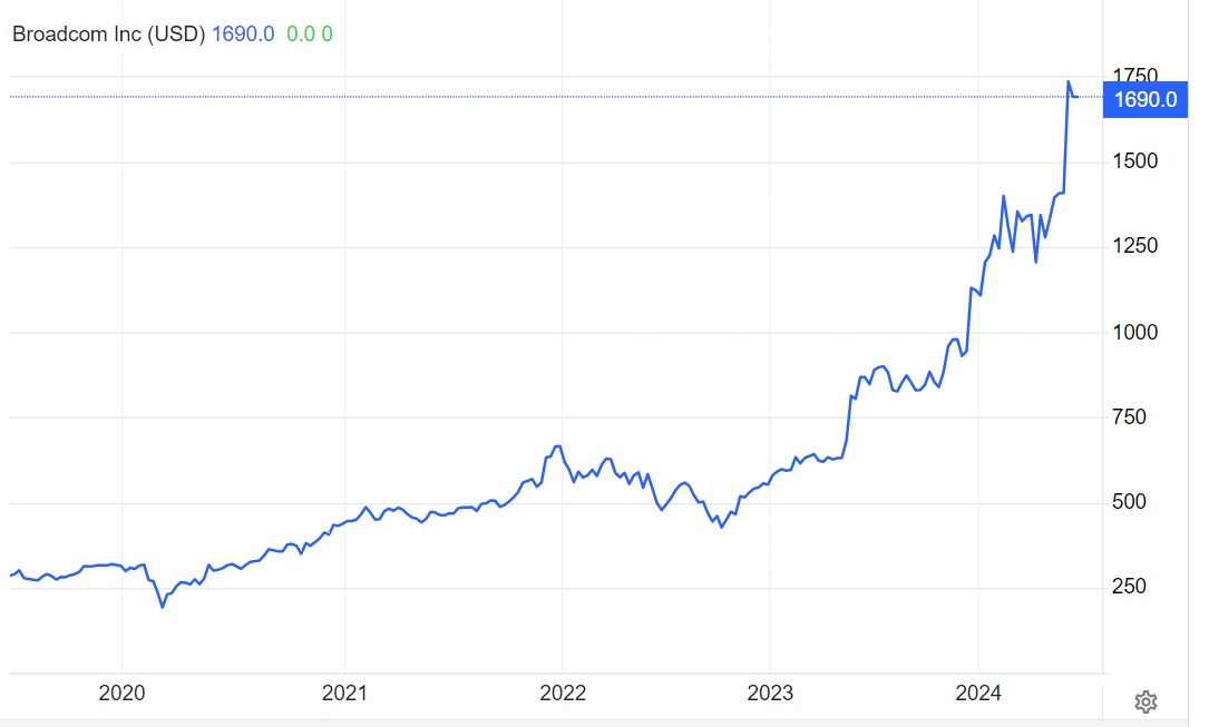 全球AI热潮最大赢家之一博通此前于北京时间6月13日公布截至5月5日的2024财年第二季度财报。博通是苹果公司(AAPL.US)和其他大型科技公司的重要芯片供应商之一,同时也是全球大型AI数据中心以太网交换机芯片以及ASIC定制化芯片的核心供应力量。