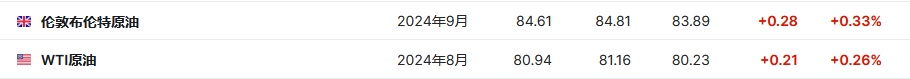 3. 截至发稿,WTI原油涨0.26%,报80.94美元/桶。布伦特原油涨0.33%,报84.61美元/桶。