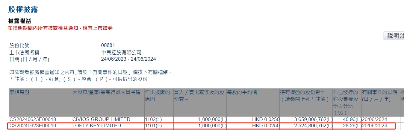 LIMITED增持中民控股(00681)100万股,平均每股作价为0.025港元,总金额约2.5万港元。增持后最新持股数目约为25.25亿股,持股比例为28.26%。