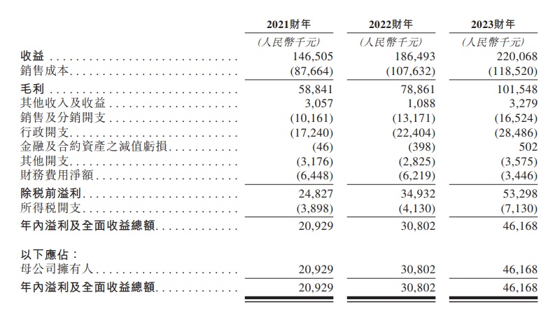 财务方面,于2021财年、2022财年以及2023财年,宇航人实现收入分别约为1.47亿元、1.86亿元、2.20亿元人民币;同期,公司实现年内溢利分别约为2092.9万元、3080.2万元、4616.8万元人民币。