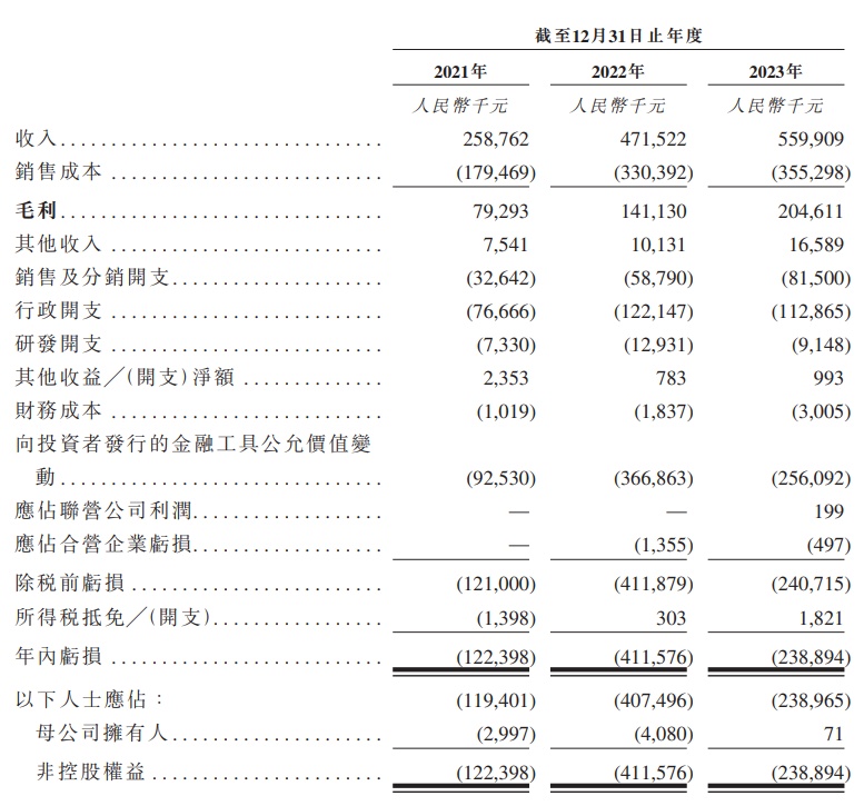 财务方面,于2021年、2022年以及2023年,圣贝拉实现收入分别约为2.59亿元、4.72亿元、5.60亿元人民币;同期,公司实现毛利分别约为7929.3万元、1.41亿元、2.05亿元人民币。