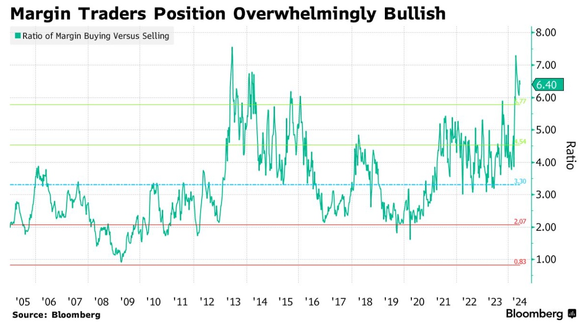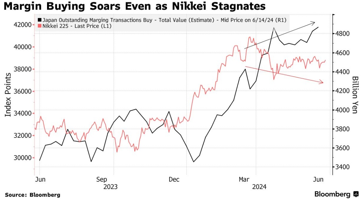 在经历了强劲的上涨之后,日本股市近几个月来一直落后于全球同行,原因是国内经济增长乏力、企业业绩预期令人失望,以及市场担心日本央行提高借贷成本的后果。保证金买家实际上是从经纪商那里借钱购买股票,通常使用高杠杆,如果市场走弱,投资者可能需要平仓,从而导致进一步抛售。