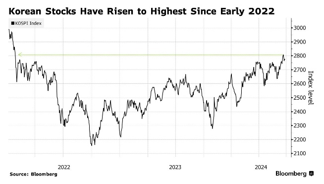 随着对人工智能的兴奋提振了三星电子(SSNLF.US)和SK海力士等芯片制造商的股价,Kospi指数飙升至2022年初以来的最高水平。投资者表示,监管机构关于企业如何提高股东回报和改善公司治理的指导方针,也应该有助于提振低迷的估值。