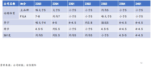 361度的表现并非孤例,行业视角下,现阶段运动品牌正处于库存持续改善、产业链景气度逐步抬升的阶段。据观察,主流运动品牌的去库存过程均较为顺利,以港股四大运动品牌为例,今年一季度的库销比均已降至5以下。而受益于一系列国际赛事的催化,下半年运动品牌的市场表现或许还会进一步优化。