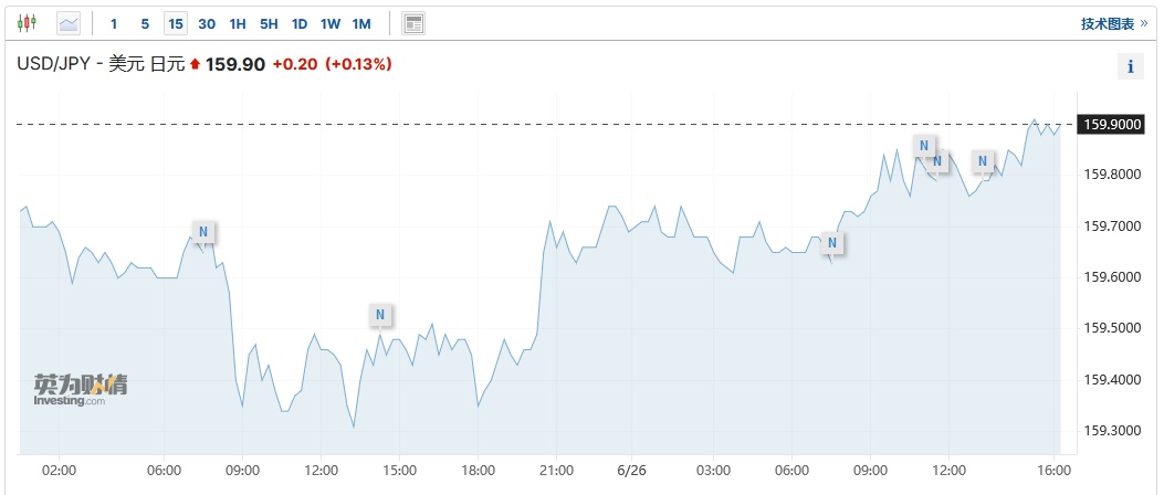 截至发稿,日元兑美元汇率报1美元兑159.90日元,接近4月底创下的1美元兑160.17日元。