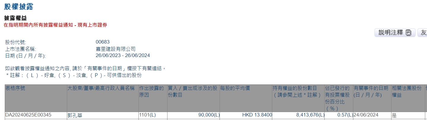 智通财经APP获悉,香港联交所最新资料显示,6月24日,公司主席兼行政总裁郭孔华增持嘉里建设(00683)9万股,平均每股作价13.84港元,总金额为124.56万港元。增持后最新持股数目约为841.37万股,持股比例为0.57%。