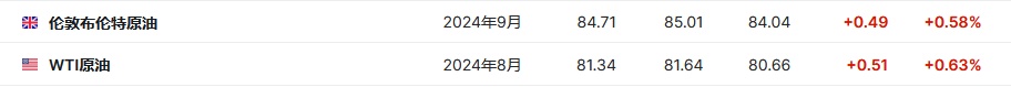 3. 截至发稿,WTI原油涨0.63%,报81.34美元/桶。布伦特原油涨0.58%,报84.71美元/桶。