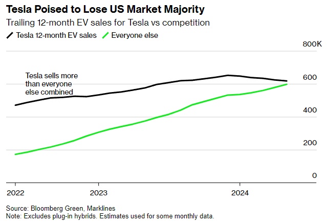 需要明确的是,特斯拉仍然是美国最大的电动汽车制造商。在过去的12个月里,特斯拉在美国的电动汽车销量比其最接近的竞争对手现代/起亚高出五倍多。特斯拉还生产世界上最畅销的汽车Model Y,在全球销售的纯电动汽车比其他任何公司都多。