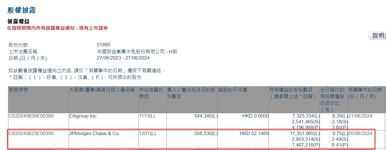 智通财经APP获悉,香港联交所最新资料显示,6月20日,小摩减持中国中免(01880)50.853万股,每股作价52.1469港元,总金额约为2651.83万港元。减持后最新持股数目约为1135.20万股,最新持股比例为9.75%。