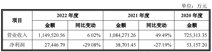 财务方面,公司分别于2020年、2021年、2022年实现营业收入约为72.53亿元、108.43亿元和114.95亿元人民币,呈逐年增长趋势,公司的净利润分别约为5.32亿元、3.87亿元和2.74亿元人民币。