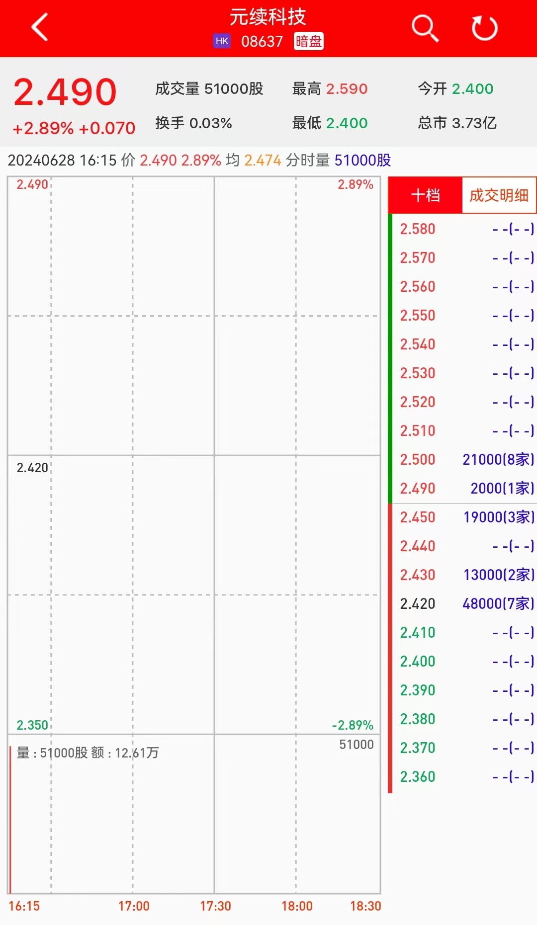 智通财经APP获悉,元续科技(08637)将于7月2日(周二)在香港挂牌。截至发稿,利弗莫尔证券暗盘交易显示报价2.49港元,较招股价2.42港元上涨2.89%。每手1000股,不计手续费,每手赚70港元。