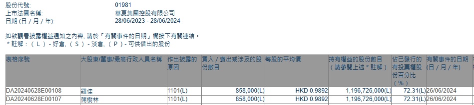 智通财经APP获悉,香港联交所最新资料显示,6月26日,蒲树林增持华夏控股(01981)85.8万股,每股作价0.9892港元,总金额约84.87万港元。增持后最新持股数目约为11.97亿股,最新持股比例为72.31%。