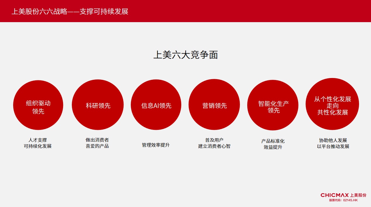 在战略层面,上美把人才培养和人才梯队建设,视为发展的首要战略。据2023年年报显示,上美股份已全面推行“六六战略”,以六大竞争面、六大板块规划,支撑可持续发展,和长远业务增长。在六大竞争面中,“组织驱动领先”居于首位。
