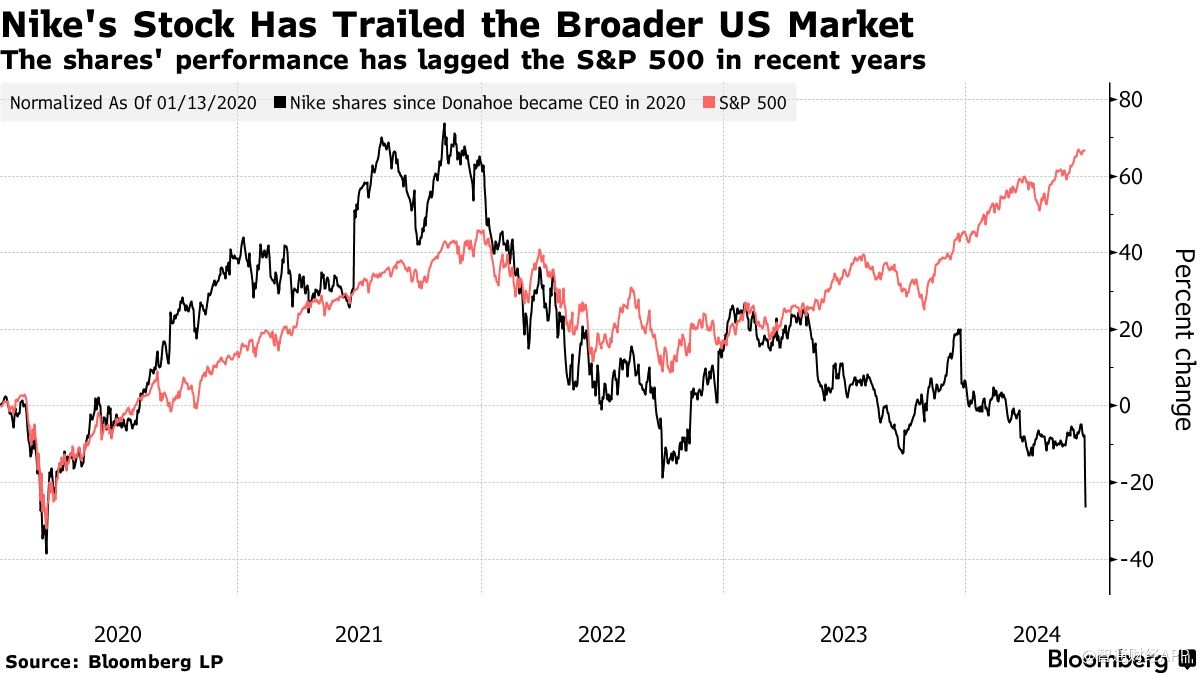 耐克股价表现落后大盘