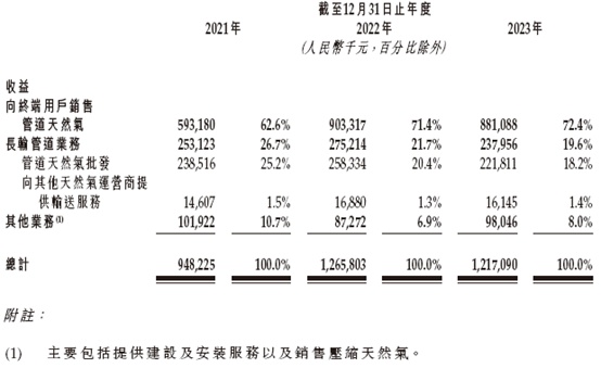 2021-2023年,五洲能源向工业终端用户销售管道天然气的收益分别约为5.23亿元、8.14亿元及7.86亿元,占向终端用户销售管道天然气总收益约88.2%、90.1%及89.2%。五洲能源之所以在2022年能够实现“大迈步”,主要得益于长葛特许经营区域新增从事有色金属冶炼及压制、炼钢及钢圈生产的工业终端用户,使其销气量增加,同时还有因采购成本上升而导致售价上升的因素存在。而在2023年,这一部分业绩的波动主要也因长葛特许经营区域内多家从事有色金属冶炼及压制以及涉猎制药行业的工业终端用户消费量下降。