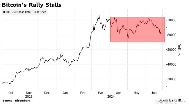 智通财经APP获悉,自3月份以来,比特币价格已下跌约13%,与前两个季度分别上涨67%和57%形成鲜明对比。比特币在3月14日达到创纪录的73798美元,第二季度收盘时约为61000美元。