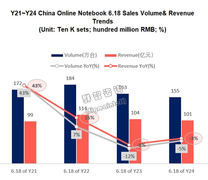 综上,群智咨询研判,2024年“6.18”笔电市场大促表现揭示了以下核心市场变化: