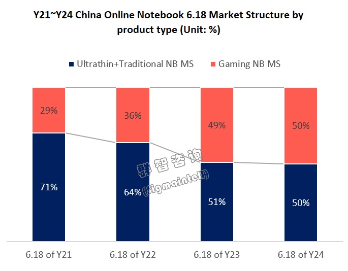 2. 游戏本竞争力持续增强:随着电竞行业的发展,消费者对高性能游戏设备的需求持续旺盛,游戏本市场份额创新高,达到了50%,与轻薄本平分秋色。