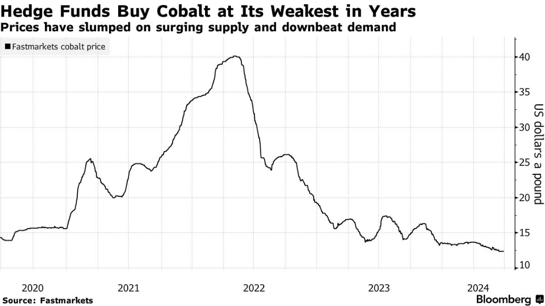 据了解,与铜或石油等大宗商品相比,钴市场相对较小且专业化,主要供应来源为刚果民主共和国和印度尼西亚。由于市场供应过剩,钴价已跌至七年多来的最低点。十年前,类似Pala Investments这样的基金也曾利用钴价疲软的机会大量购买金属,看好能源转型的前景,最终这一策略证明是成功的。