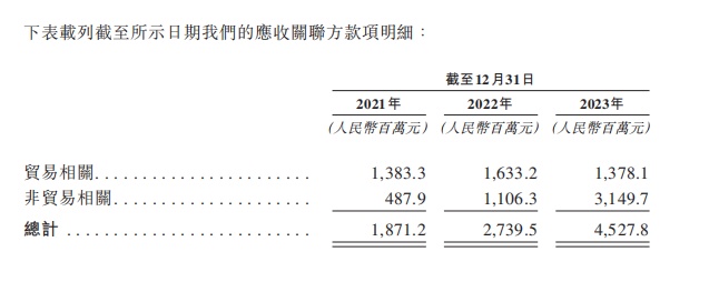 相较于物美而言,麦德龙供应链话语权处于弱势地位,反映在财报上,便是公司应收款项的持续高增。报告期内,公司应收关联方款项分别为18.7亿元、27.4亿元及45.3亿元,同比增长率分别为46.5%、65.3%。关联方应收款项的加速增长,对麦德龙供应链的资金流动状况无疑是雪上加霜。