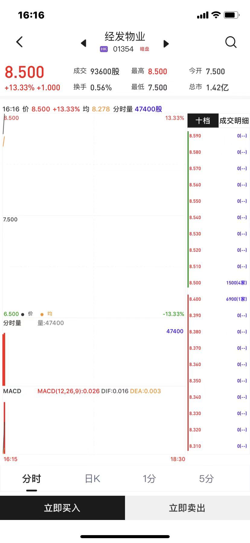 智通财经APP获悉,经发物业(01354)将于7月3日(周三)在香港挂牌。截至发稿,利弗莫尔证券暗盘交易显示报价8.50港元,较招股价7.50港元上涨13.33%。每手300股,不计手续费,每手赚300港元。
