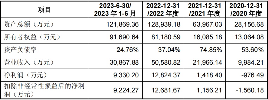 财务方面,于2020年度、2021年度、2022年度以及截至2023年1-6月,晶亦精微实现营业收入约为人民币 9984.21万元、2.2亿元、5.06亿元和3.09亿元;同期,公司实现净利润分别为约人民币-976.49万元、1418.4万元、1.28亿元和9330.2万元。