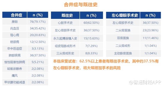 TRAVEL II 研究是一项前瞻性、多中心、单臂临床试验,主要用于评估LuX-Valve Plus于重度三尖瓣反流患者中应用的长期安全性和有效性。TRAVELL II 临床试验共纳入了中国15家临床中心的96例患者。患者平均年龄为71.35岁,平均STS评分为9.09%,37.50%的患者在研究前接受了左心瓣膜手术,15.63%的患者有过起搏器植入史,同时多合并其他基础病,基线情况较差,存在较高的外科手术风险和接受其他方式介入治疗的难度。