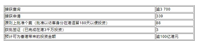 香港投资推广署署长刘凯旋表示,新计划为香港带来多元且庞大的人才库,当中吸引了经验丰富的商人和创新企业家,如超过300个申请个案全数获批,预计可为香港带来超过100亿港元的资金,增强香港资产及财富管理业的发展优势。
