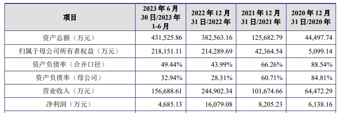 财务方面,于2020年、2021年、2022年、2023年1-6月,祥邦科技分别实现营收约6.45亿、10.17亿、24.49亿、15.67亿元人民币,同期净利润分别约为6138.16万、8205.23万、1.61亿、4685.13万元。