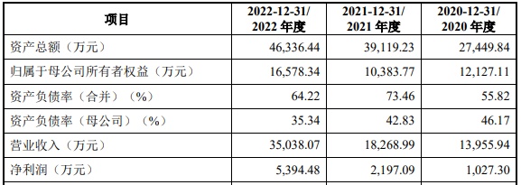 业绩方面,于2020年、2021年、2022年,飞潮新材分别实现营收约为1.40亿、1.83亿、3.50亿元人民币,净利润分别为1027.30万、2197.09万、5394.48 万元。