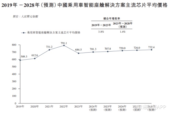 根据灼识咨询的资料,于2021年、2022年及2023年,乘用车智能座舱解决方案主流车规级芯片的平均价格分别为每片731.2元(单位为人民币,下同)、每片791.1元及每片684.5元。尽管芯片价格近年来有所回落,但整体仍然位于高位。