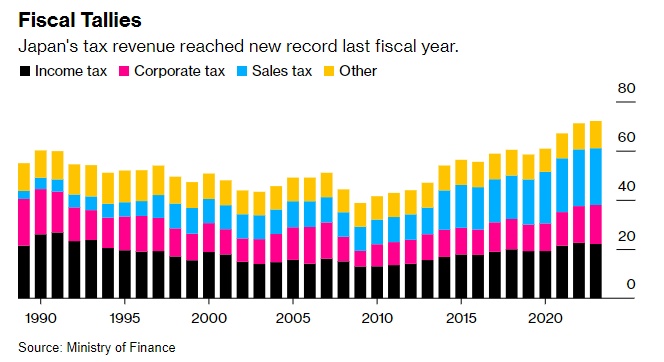 智通财经APP获悉,在截至今年3月的财政年度中,日本的税收收入再次创下历史新高,这一积极结果在一定程度上是由日元疲软和高通胀推动的。