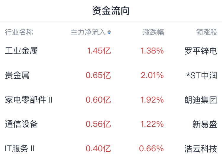 主力资金方面,资金青睐工业金属、贵金属、通信设备等行业;资金出逃半导体、中药、乘用车等行业。