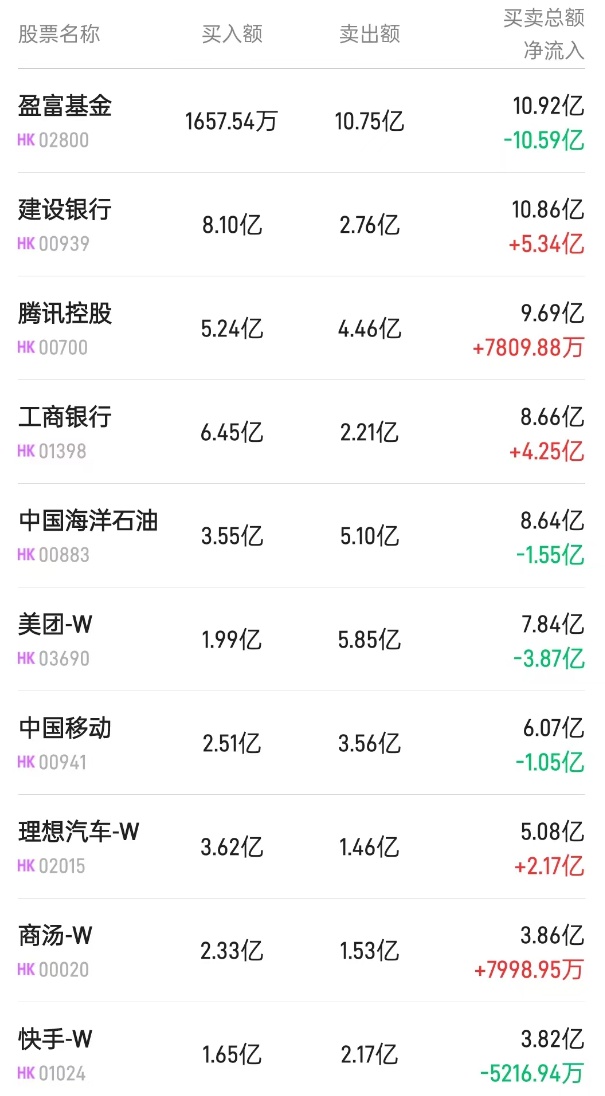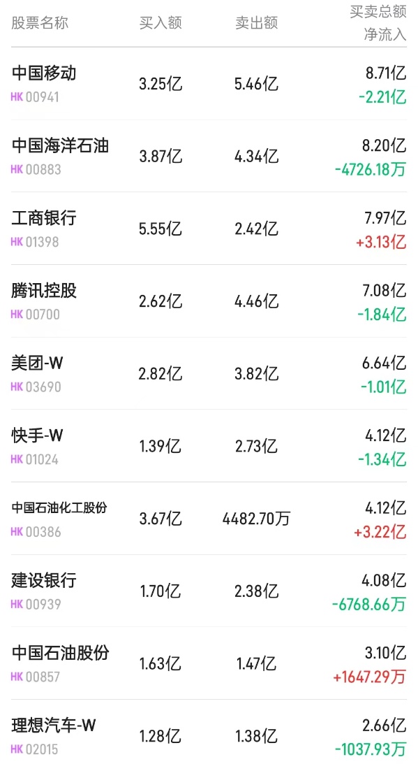 此外,腾讯(00700)、中国移动(00941)分别遭净卖出1.06亿、3.26亿港元。