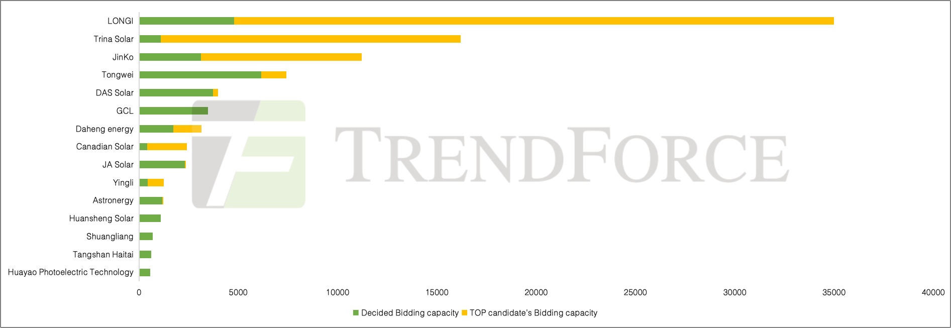 图:2024年H1国内光伏组件招标采购中标规模,单位:MW