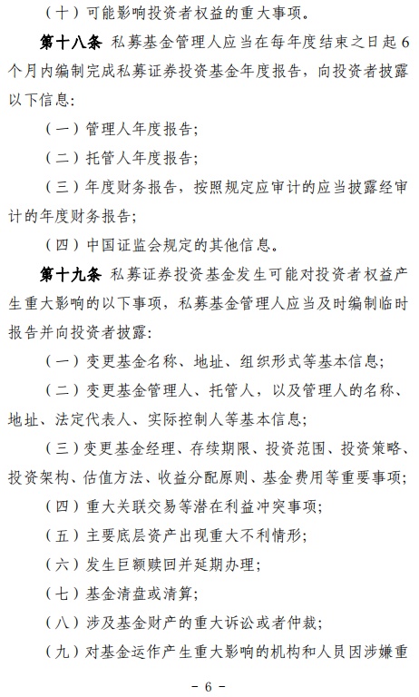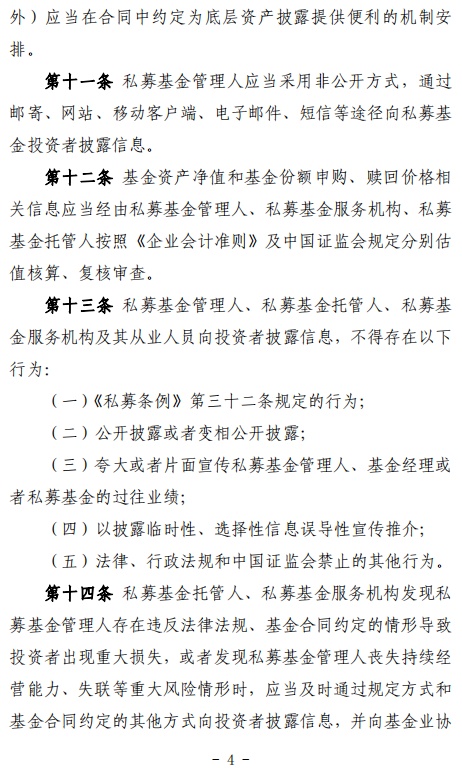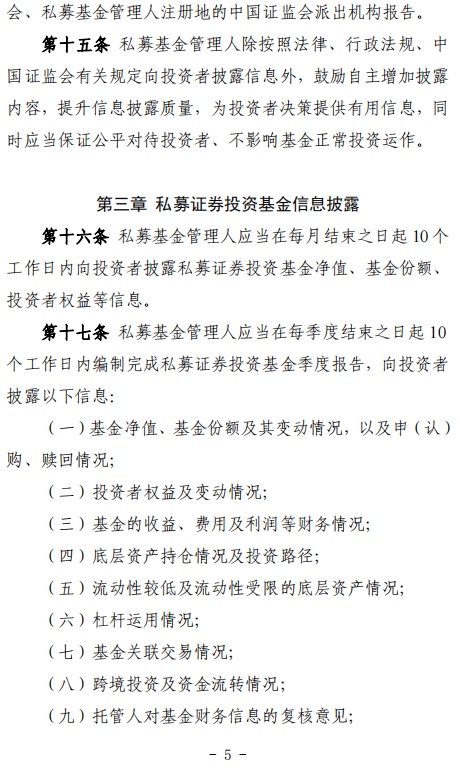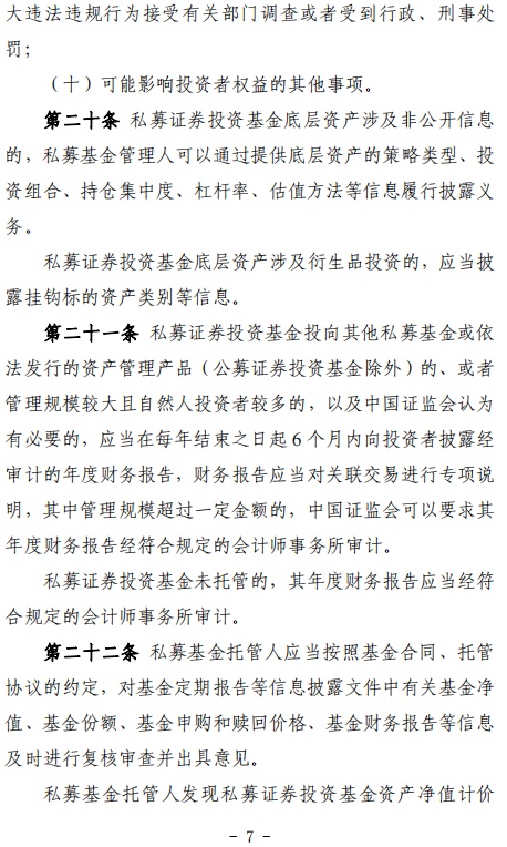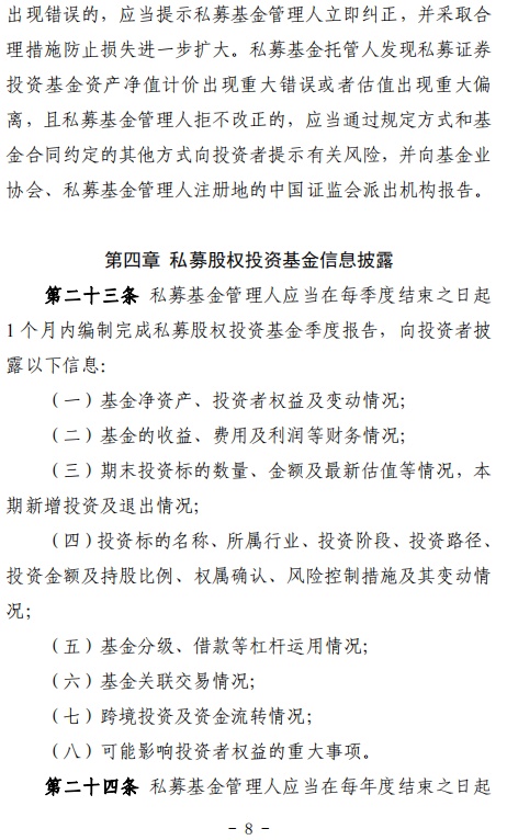 智通财经APP获悉,7月5日,证监会发布关于就《私募投资基金信息披露和信息报送管理规定(征求意见稿)》公开征求意见的通知。其中提出,私募基金托管人、私募基金服务机构发现私募基金管理人存在违反法律法规、基金合同约定的情形导致投资者出现重大损失,或者发现私募基金管理人丧失持续经营能力、失联等重大风险情形时,应当及时通过规定方式和基金合同约定的其他方式向投资者披露信息,并向基金业协会、私募基金管理人注册地的中国证监会派出机构报告。