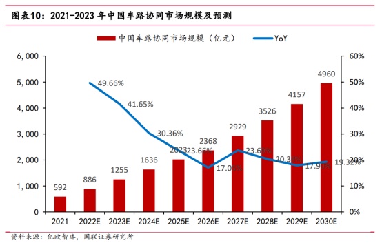 另据亿欧智库的预测,2030年中国车路协同市场规模有望达4960亿元,2021-2030年CAGR达26.64%,市场前景广阔。