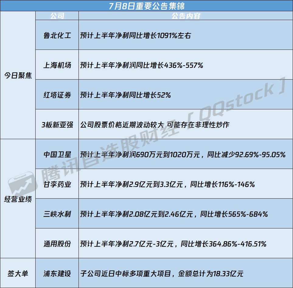 1、鲁北化工:预计上半年净利同比增长1091%左右