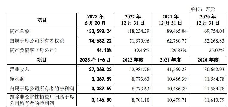 财务方面,卓谊生物分别于2020年度、2021年度、2022年度以及2023年1-6月实现营业收入约为3.06亿、4.16亿、5.30亿以及2.71亿人民币;同期,实现净利润分别为1.16亿、1.05亿、8773.63万以及3089.59万人民币。