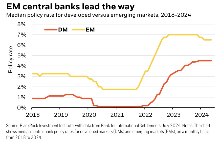 智通财经APP获悉,贝莱德投资研究所(BII)周一在一份报告中表示,一些新兴市场央行出于对通胀的担忧,正在暂停降息,发达市场的决策者可能也发现自己需要在更长时间内维持较高的利率(Higher