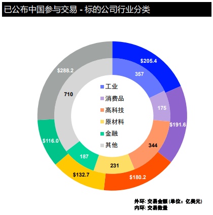 从并购标的行业看,涉及中国大陆企业的并购主要集中在工业领域,占据了市场份额的18.44%,总额为205亿美元。相比下降了36%。消费品行业紧随其后,占据了市场份额的17.2%,与去年同期相比增长了128.3%。高科技行业位居第三,占据了市场份额的16.17%,总额为180亿美元,与2023年上半年相比下降了8.5%。一由多家投资者组成的买方团同意以约600亿人民币(约83.1亿美元)的价格收购大连新达盟商业管理有限公司60%的股份,该交易为2024年上半年涉及中国大陆企业的最大并购交易。
