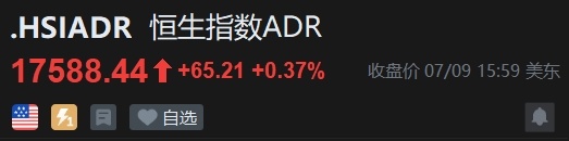 智通财经APP获悉,周二美股三大指数涨跌不一,恒生指数ADR上涨,按比例计算,收报17588.44点,较香港收市上涨65.21点或0.37%。