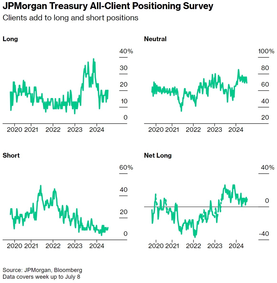 看涨情绪也出现在美债的现货市场,摩根大通的一项调查显示,客户的各期限美债多头头寸增至两周以来的最高水平。