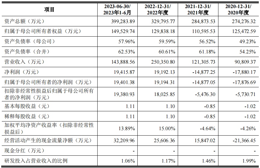 于2020年-2023年上半年,公司主营业务收入构成情况如下: