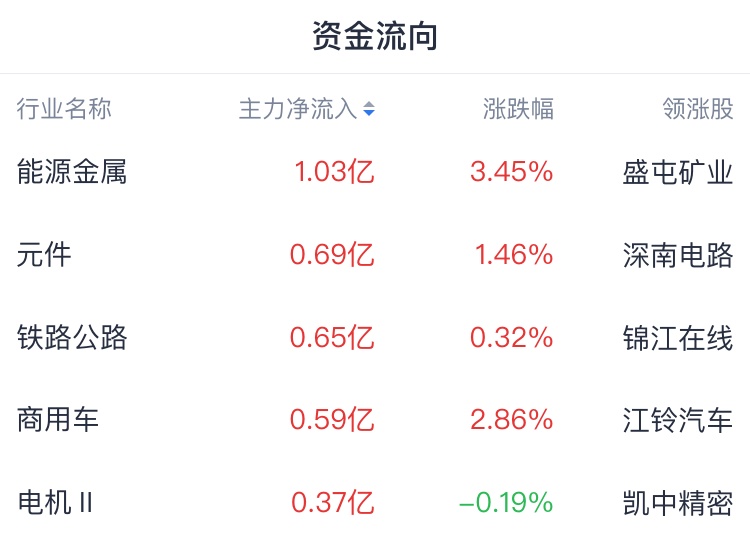 主力资金方面,资金青睐能源金属、物流等行业;资金出逃乘用车、半导体、电力等行业。