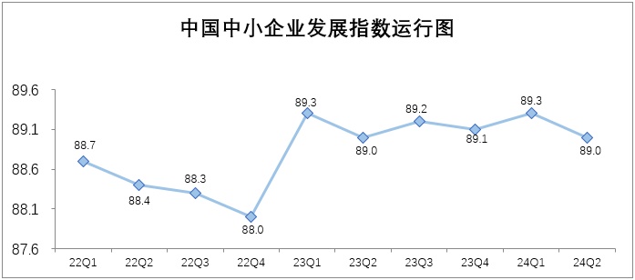 智通财经APP获悉,7月10日,中国中小企业协会数据显示,2024年二季度,中小企业发展指数为89.0,较一季度下降0.3点,高于2022年同期水平,与2023年同期持平。其中,分项指数均有所下降,分行业指数1升1平6降。