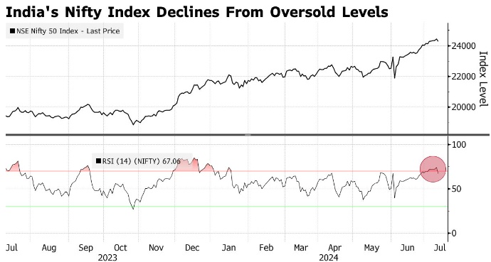 WealthMills证券公司的策略师Kranthi Bathini说:“投资者正在更高的水平上获利,这可能会在7月23日政府预算公布之前创造整合。在强劲反弹之后,人们普遍预计市场将休息一下。”莫迪政府将于7月23日提交印度联邦预算。一位印度高级部长此前表示,莫迪的新政府将于7月23日提交截至2025年3月的财年联邦预算。