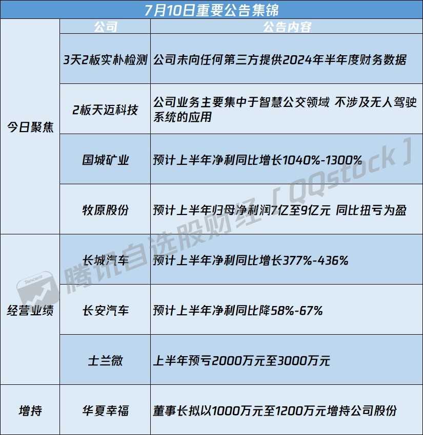 3、国城矿业:预计上半年净利同比增长1040%-1300%